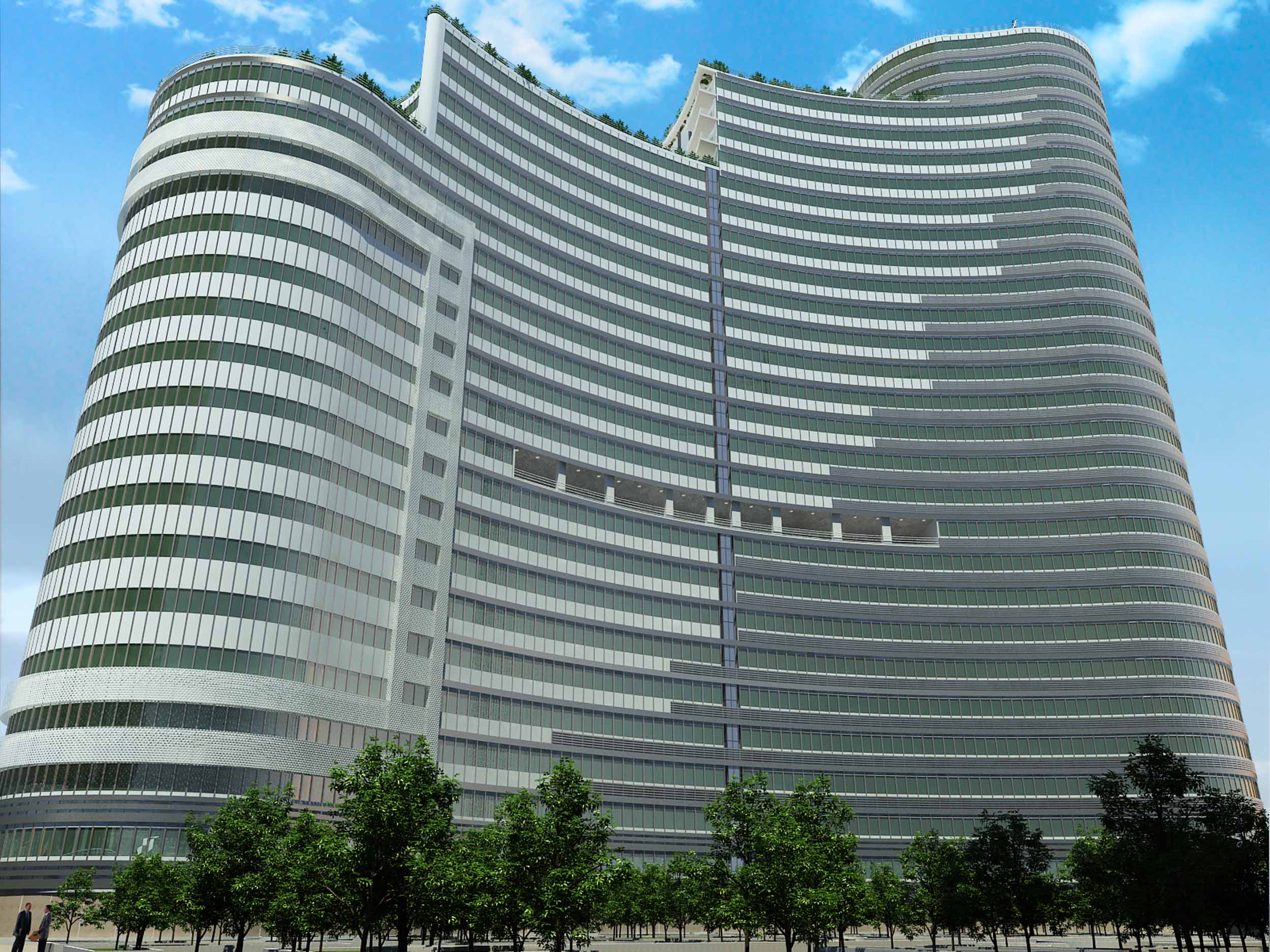 Programme : 2 étages de parking avec 1000 places chacun de parking, 1 étage comprenant : Salle de GYM, Maternelle, Bibliothèque, Magasin et une Salle Multipurpose. 28 étages résidentiels comprenant 906 unités.